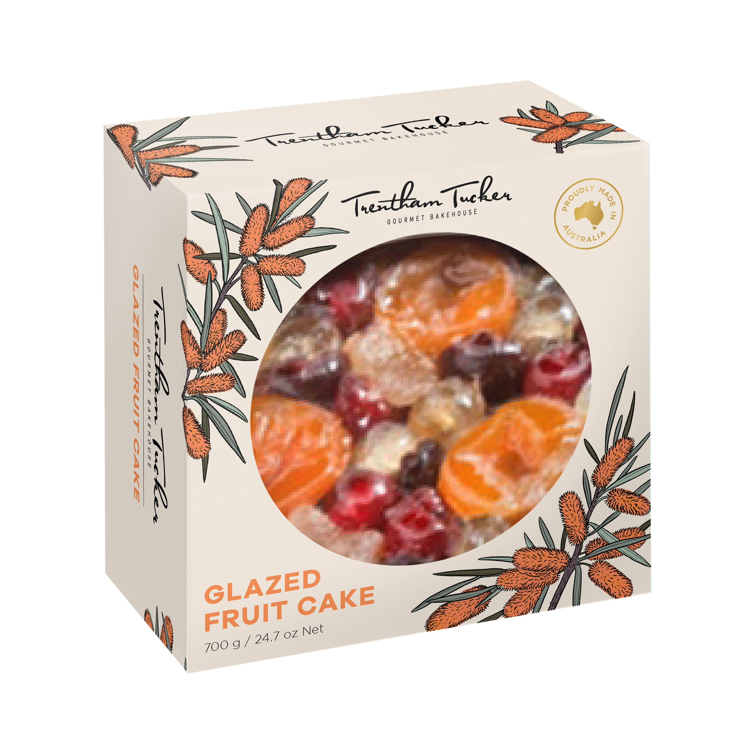 Mixed Fruits (60%) [Sultanas, Pineapple Glace, Apricots Glace, Raisins, Orange & Lemon Peel, Red, Black & Yellow Glace Cherries, Currants, Sunflower Oil, Sucrose, Glucose-Fructose Syrup, Preservatives (202,220,223), Acidity Regulators (330, 500), Rice Flour, Natural Colours (120, 163), Mineral Salts (509,339)], Wheat Flour [Vitamins (Thiamin, Folate)], Sugar, Egg, Tree Nuts (4%) (Pecan , Walnuts), Butter, (Milk), Glazing Agent [Sucrose, Glucose, Water, Vegetable Gums (407,415,406), Acidity Regulators (332,330), Flavour, Preservative (200)], Sherry, Brandy, Natural Colour (150a), Raising Agents [(170,450,500), Wheat Starch], Humectant (422), Iodised Salt, Preservative (202).